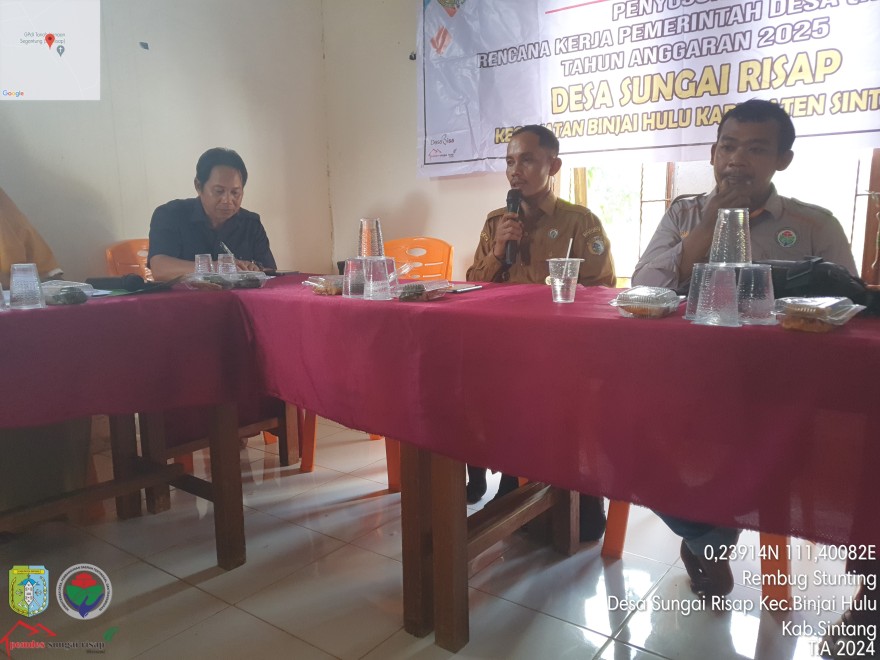 Kepala Desa Sungai Risap, Joni menyatakan dalam sambutannya, bahwa ini merupakan Tahun ke-4 Penyusunan Dokumen RKP Desa sesuai dengan RPJM Desa Tahun 2021 s/d 2027, yang dimana nantinya RPJM Desa (Rencana Pembangunan Jangka Menengah Desa) akan di ubah menyesuaikan dengan telah din sahkan nya Undang-Undang Desa yang baru. Musdes RKP Desa bertujuan untuk tercapainya pemanfaatan potensi desa secara efektif dan efisien dalam pembangunan desa menuju desa yang maju dan sejahtera. Selain itu tujuan Musdes RKP Desa adalah untuk menentukan arah kebijakan pemerintah desa, baik dalam sektor pembangunan, pembinaan, pemberdayaan ataupun penyelenggaraan pemerintah desa.”,ungkap beliau.